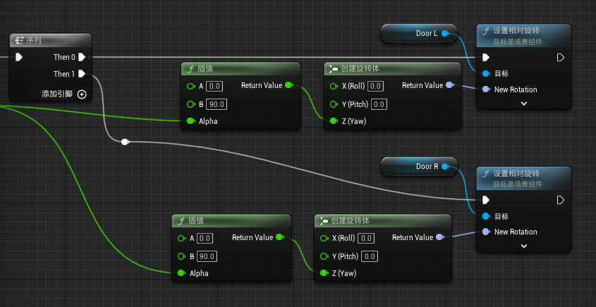在空白处新建 设置相对旋转 节点,并将门连接到目标
